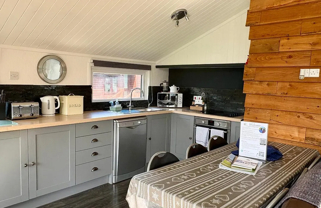 Guests are welcome to cook their own meals in a fully furnished kitchen of this South Cerney property.